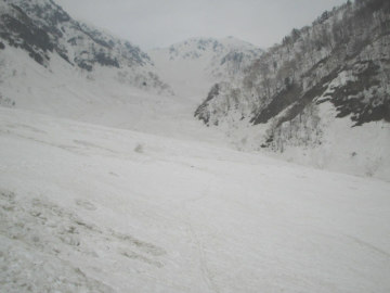 | 双六カールは快適♪ | 双六谷出合付近から振り返る |