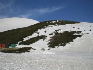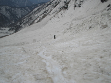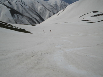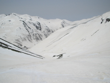 | 大ノマ乗越までは延々登っていくだけ | 大ノマ乗越から双六谷に滑り降りる |