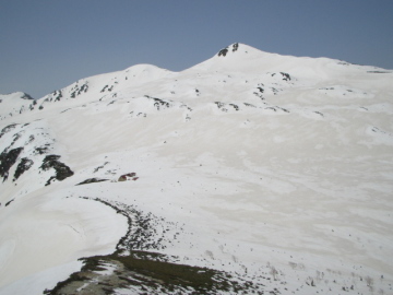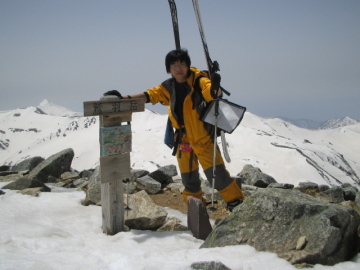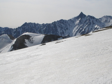 | 双六岳の山頂 | 真っ白な黒部五郎岳 滑ってみたいなあ |