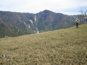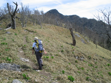 | 旭 峠登山口 | 釈迦ヶ岳が見えてきた |
