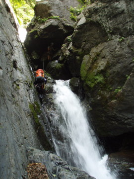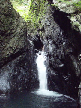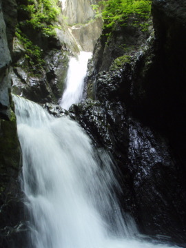 | 大ゴルジュ入口の15m滝&15m滝 | 滝上は通行不可能なゴルジュが続く |