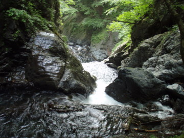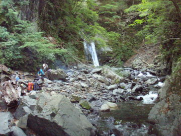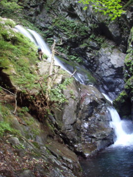 | 5m滝と続く15m滝 | しばらく小滝が続くようになる |