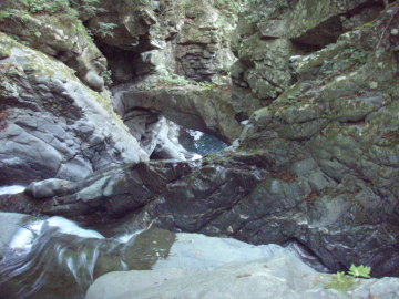 | 所の沢名物?の石橋 | ゴルジュ帯のど真ん中に唯一の河原 |