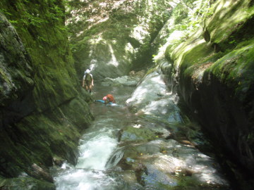 | ここは何故かトラロープがFIXされていた | ゴルジュ地形はまだまだ続く |