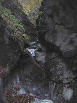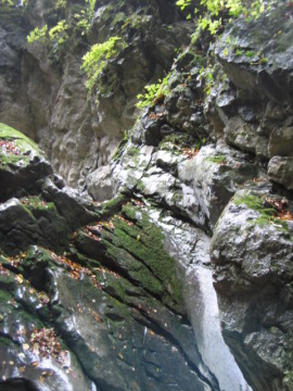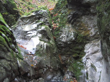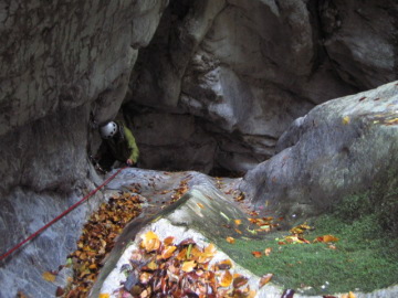 | CS6m滝を登るやまとさん | 洞窟ゴルジュを振り返る |