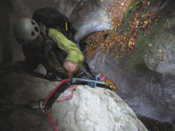 | 洞窟ゴルジュに突入 | CS6m滝はアブミの架け替えで越える |