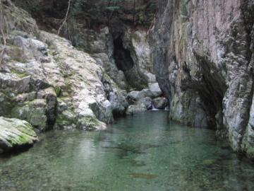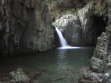 | 8m滝は左岸から巻いた | このあたりは両岸狭まり淵が続く |