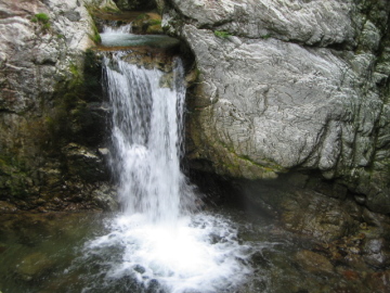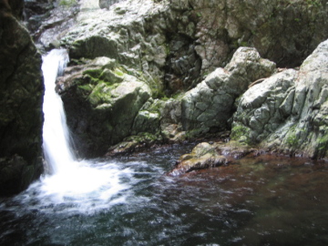 | 銚子滝2段8mの下段 | 銚子滝上段の奥にドーム状の岩が見えてきた♪ |