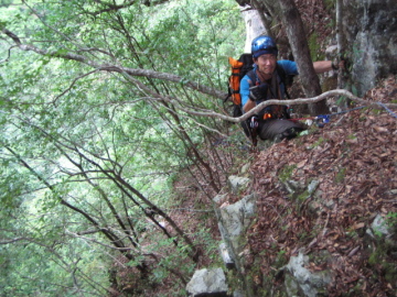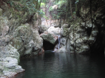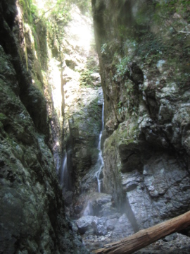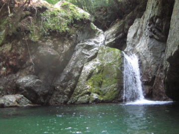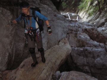 | 倒木が橋になっていてラッキー^-^ | 12m滝は右岸から大巻きして懸垂下降 |