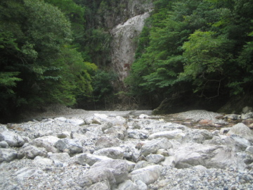 | ツルツル滑るナメ床 | 一転 穏やかな河原が続く場所も |