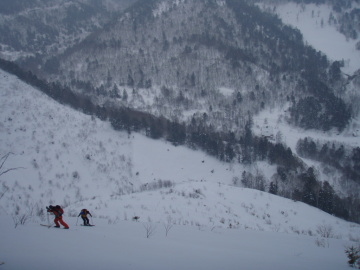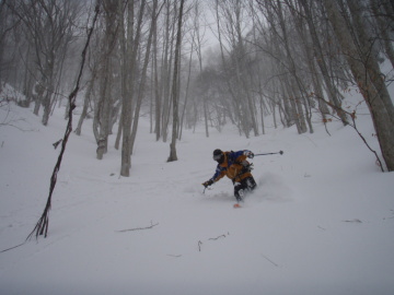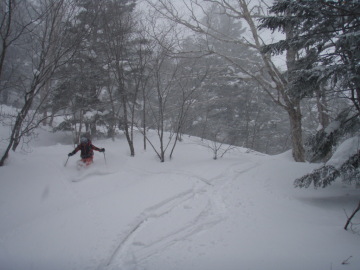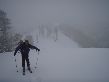 | 北東尾根を滑る | 吹雪で視界不良 |