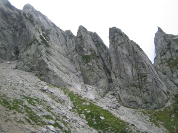 | チンネ直下のリッジ | 登攀を終え長次郎谷を下る |