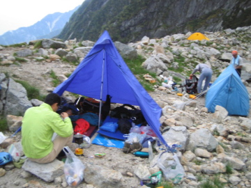 | 9/18 BP(5:10)---池ノ谷乗越(6:25)---三ノ窓(6:50/7:10)---チンネ取付き(9:30)---チンネの頭(16:05)---BP(17:30) | |