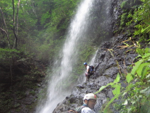 | 4m滝を登るかっきー | こてっちゃんとトミーさんも登る登る |