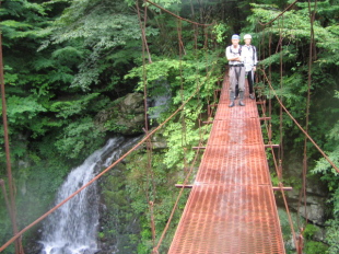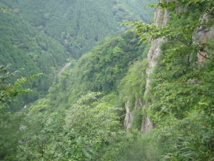 | 吊橋はけっこう高度感あり^-^ | 下山道の途中から(左の白い点はボクのクルマ) |