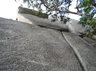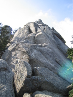 | P6 クラックルート 5.9 は1段目で力尽きた^^; | P6 チムニー W を見下ろす |