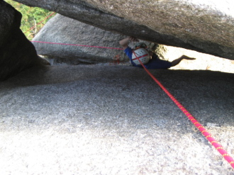 | P5 ノーマルルートVをコンテで移動 | P4 すべり台下部 W を登るトミー |