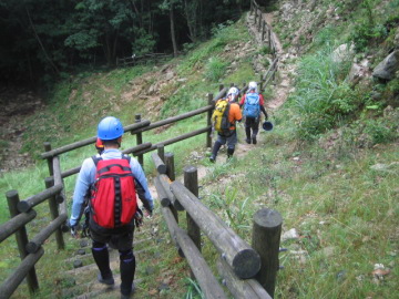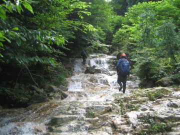 | 林道(8:15)---神崎川本流(8:30)---カラト谷遡行(9:10〜10:05)---ツメカリ谷出合(11:00)---裏見の滝(12:35)---ツメカリ谷出合(14:35)---林道(15:05) |