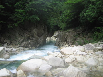 | ミニゴルジュ内は楽しい | 明るい景色に気分も明るい |