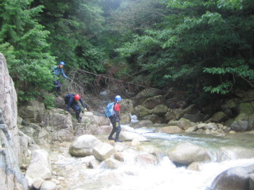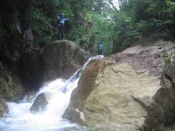 出てくる小滝は難しいモノはなく水量も普段よりあるのでわいわい楽しく進める。