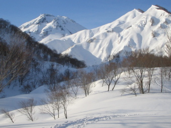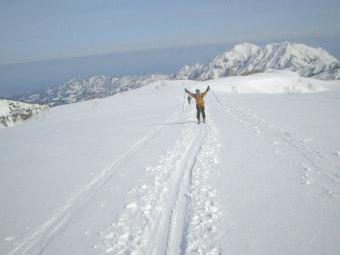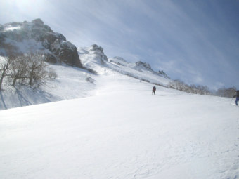 | 左 火打山 右奥 妙高山 | 北面台地を滑る♪ |