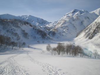 | 笹倉温泉(5:40)---アマナ平(7:40)---北面台地末端(8:25)---2000m付近デポ地(10:30/10:45)---焼山(12:00/12:10)---デポ地(12:40/13:00)---笹倉温泉(14:30) |