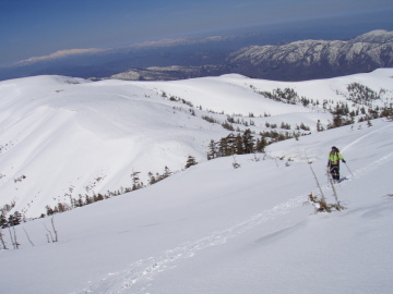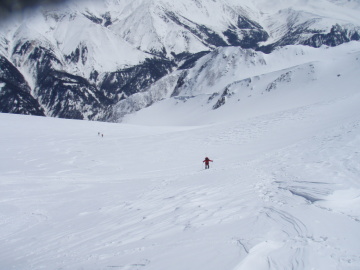 | 北ノ俣岳の大斜面 | 北ノ俣岳の大斜面を振り返る |