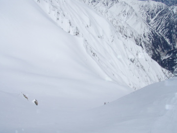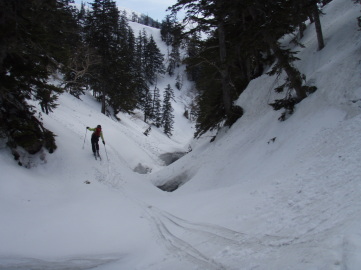 | 快適な薬師沢右俣 | 右俣をどんどん滑り降りていく |