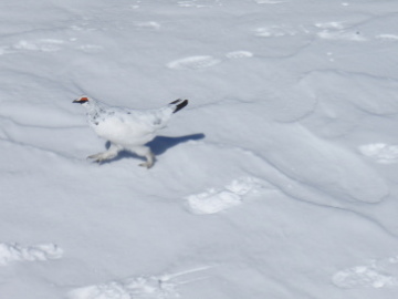| 翌日も朝から快晴。朝食を済ませチェックアウト。小屋を後にし太郎山に登っていく。北ノ俣岳へはだらだらとした登りが続いていく。 朝一の登りはまだまだ体が言うことをきかない。ひーひー言いながらなんとか頂上にたどり着いた。 今日も360度の大展望だ。 ここでも雷鳥がうろうろしてる。冬は足に毛が生えててかわいい。 さていよいよ主稜線を離れ神岡新道へ。北ノ俣岳の大斜面を滑り降りる。最初のうちはクラストで全然楽しくない。 しかし高度を下げるとどんどん滑りやすくなってくる♪ 楽しい楽しい☆ あっという間に避難小屋付近まで滑り降りた。ここからは腐った雪の中アップダウンを交えながら寺地山を目指す。 気温が高く一気に汗が噴出してくる。寺地山から振り返るとさっきまでいた北ノ俣岳の稜線がはるか遠くに見える。 さすがスキーの機動力は素晴らしい。 寺地山は頂上を左からトラバースする。その後は緩やかな斜面を進んでいくと飛越新道の分岐。 ここから尾根は曲がりくねりながらアップダウンを繰り返す。なかなか楽をさせてもらえない。 最後は登山道から離れてトンネル東側に降りる尾根に乗ったところで藪に阻まれスキーを外す。 つぼ足でひと下りすると飛越トンネルに到着した。 あとは林道を駐車地まで下っていくだけ。 山にいる2日間はお天気も良くてとても充実した山行ができました。 当初の計画ののんびりとはいきませんでしたが目的も達成できたので大満足です。同行の二人に感謝です。 薬師から双六方面にかけてまだまだ楽しそうなところがいっぱいなので是非再びおとづれたい山域です。 |