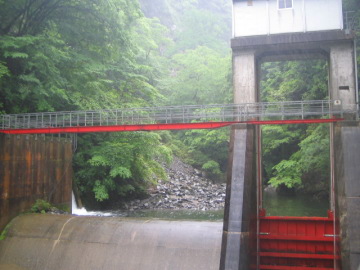 大和谷ダムは水を放水することもなく静かに山奥に佇んでいた。 ハシゴを登って右岸に移り、ダム上の貯水池を巻きながら谷に戻った。