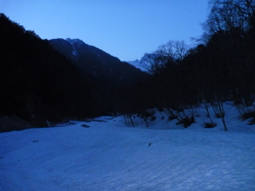 | 午前3時過ぎに新穂高を出発 | 白出沢付近で明るくなってきた |