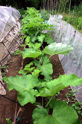 向かって左の写真は去年の4月16日〜10月15日に種を蒔いた大浦ゴボウで、向かって右の写真は4月15日〜5月16日に種を蒔いものです。根は朝鮮人参の様ですが、実が柔らかく美味しいので、毎年栽培しています。ゴボウは出芽率が悪く、虫に食べられたり、アブラムシが付きやすく大変で、去年種を蒔いた分は一部塔立ちしていて心配ですが、収穫が楽しみです。