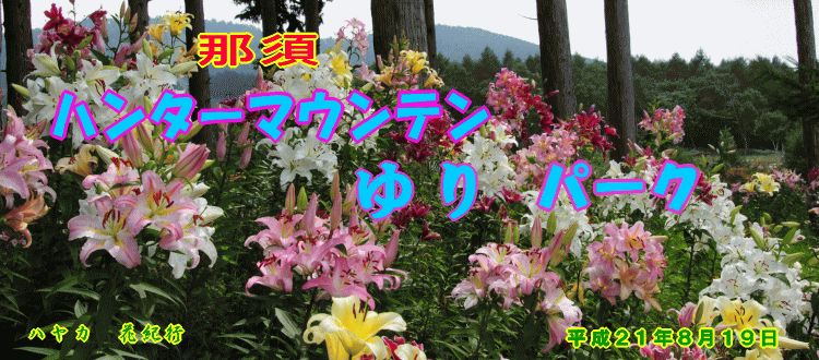 | 近くにいる姉がTVで放送したのを見たらしく、 行ってみたいと言い出した。それじゃあ行ってみるか ということで、姉のところと二夫婦で遠征した。 塩原から有料もみじラインを走って行くとやがて 案内看板にしたがって到着、「那須ハンターマウ ンテン スキー場」の看板の下に「ゆりパーク」の 表示、おお、スキー場併設なんだと話しながら 入ってみると、な、なんと上の写真の通りスキー場 そのもの、ゲレンデがそのままお花畑、びっくり するやら感心するやらでありました。 その広大なスケールは想像を超えるもので、始めは 西洋ユリばかりでとか、見頃は少し過ぎたかなどと 因縁を付けていたが、頂部の白樺林やゲレンデを 散策しながら、ゆっくり歩いて降りて来るうちに、 問答無用のスケール、大迫力の「花パワー」に 圧倒されて大満足しておりました。 高いと思った入場料1,000円、片道リフト500円も ハイ、まったく異存はございません!と納得いたし ました。 「来て良かったね〜」と姉もご満悦でした。 |
