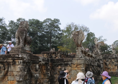 ![]() 西塔門を通りぬけると広大な敷地にナーガの手摺のある参道 | ||