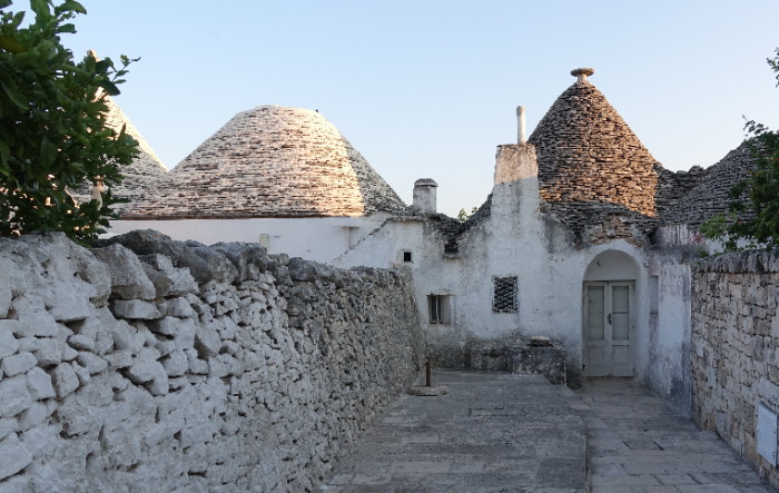 この円錐形の屋根の建物が トゥルッリ(Trulli)と言ってこの地方独特の住居なのです。なんとメルヘンチックな雰囲気でありましょう。でも起源は領主に搾取されていた農民の税金対策だったという説もある。石を積んだだけの屋根は仮設住宅とみなされたらしい。