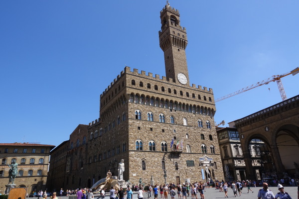 シニョーリア広場にはヴェッキオ宮があります。この建物はかつてのフィレンツェ共和国政庁舎でした。