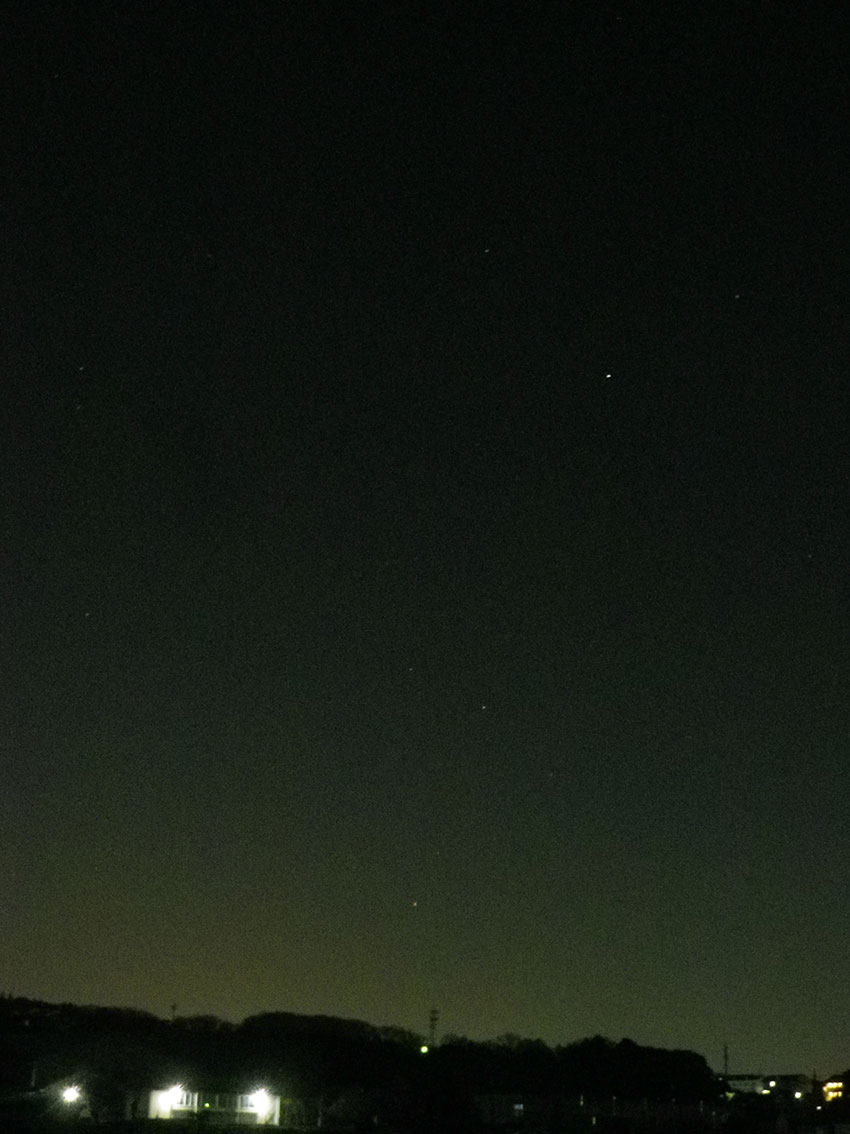 東の地平線に昇ったてんびん座、そして昇り始めたさそり座。この画像が撮影された2013年から2014年にかけて、土星がてんびん座を運行していました。画面上が北で、下が南。