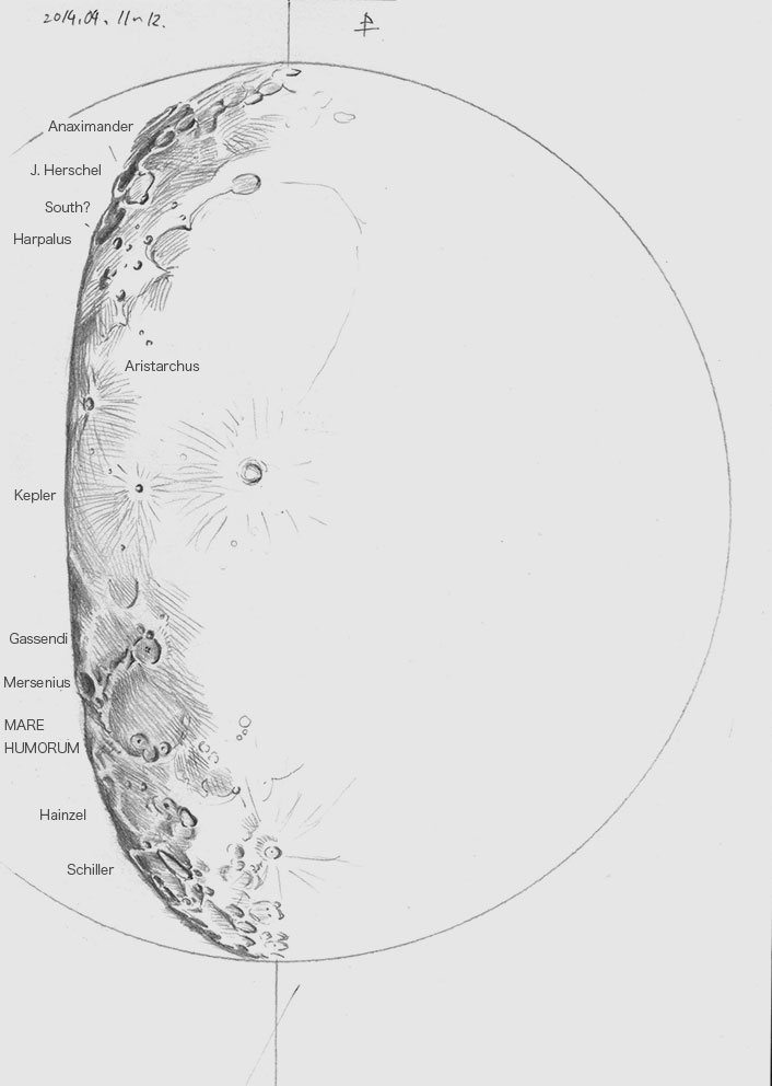 2014年、4月11日の21時から12日の1時にかけて断続的にスケッチした月です