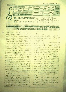 ヒューライツステーション)から依頼を受け、同所発行の「ならヒューライツニュース61(2002年8月号)」[2002/8/1発行]のリレー連載「いのちかがやけ」に拙文が掲載されました。タイトルは研究所でつけていただきました。1600字という字数制限があったため、話題を数点に絞ったのですが、最後の方は、詳しく書けなかったのが心残りです。2002/7/22執筆。