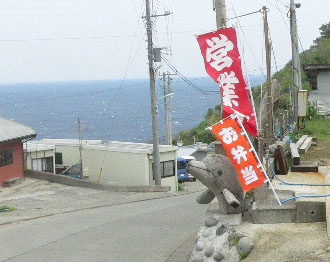 美美庵(みんみんあん)さんは港から上がってくる坂道を曲がったところにある。交番の前の道を少し下ったところにあるのですぐに分かるはずだ。 里の地図 この写真の「のぼり」が立っていれば営業しているので、のぼりを見かけたら是非行ってみよう!お弁当なども売っている。