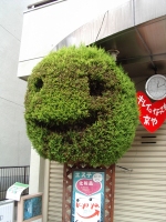植木のようであるが、その刈り込み方がなんともニコニコマークのように仕上げているのだが、