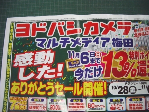 (これは平成17年10月28日、日本シリーズでロッテが優勝した翌々日の出来事である) 今朝、新聞の折込にヨドバシカメラ梅田店のセールのチラシが入っていたのだが、 「感動した! ありがとうセール開催!」 と書かれていた。 しかしながら、これを見て即座に、 何に感動して ありがとう なんですか? と思ってしまったのだ。 まぁ、ロッテの優勝に感動したのならいざしらず、もしかして我らがタイガースの見事な負けっぷりに感動してありがとう、と言うのなら、そんなセールは即刻やめてくれ。 せめて主語は入れて欲しかったぞ、ヨ○バシさん。 便乗でもこれはのぉ。。。とは少し邪な考えかもしれないが。 これは或る一人の虎ファンのボヤキである。 |