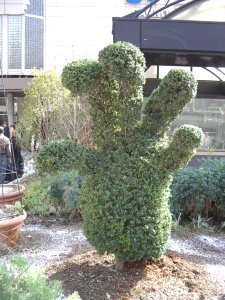 先日、神戸を歩いていましたら、JR三ノ宮駅北口前の広場に、とある植え込みがあったのだが、パッと見、 キングギドラ? と、ちょっと懐かしくもある植え込みだがよく見れば、 手のひら とイメージして刈り込んでいるようだ。 神戸に「おいでおいで」と呼び込み熱心な様子に神戸らしさよりも大阪的な強さを感じるのはなぜだろう? いや、先日載せた川西の「ニコニコ」と同じく、神戸圏は植え込みアートが好きなんだろうか? ま、それはさておいて、ちょっと面白い季節限定な植え込み、今が旬であるので是非、神戸に。 |