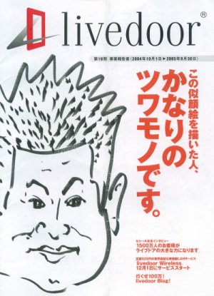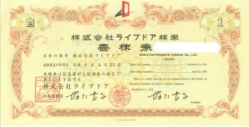先週4月14日に東証マザーズ市場から上場廃止、とレッドカードを食らってしまったお騒がせ企業、ライブドア。 現在はUSENとの提携により再起への道を模索してはいるものの、その先はますます険しいものであろう。 で、今回はそのライブドア関連のモノをご紹介。 これがライブドアの株券だ。 実は私、ライブドアの株主なんです。 一連の前社長堀江氏の怪行動を見るに、なにかあるだろうな、と儲け度外視で株主になったんですが、あんな突然かつ劇的な結末を迎えようとは。。。さすがホリエモン、想定外な奴だ。 なので堀江氏タイーホ!の直後に慌ててその内の1株だけ株券にしたのですが、410円(買った当時)の株券を現実化して手元に置こうと思ったら、証券会社に引き出し発行手数料や書留郵送料など4000円近くもかかってしまった。さらに株を買ったときの手数料やらいやなんやらかんやらとかで大方1万円近くも払っている計算になる。 廃止時の終値がたったの94円だったし、もう今となってはただの紙屑と化しているので、我ながらアホな買い物をしたもんである。 ま、ホリエモンのサインは貴重かな。 けど、逮捕直前に送られてきた事業報告書は、表紙にあの 自称・ホリエモンお父さん こと自民党幹事長・武部氏が描いたホリエモンが堂々と! 別に私はホリエモンの信者とかでもなんでもないが、これはちょっと手に入ったのは嬉しい。 意外と武部氏、絵の才能あるぞ(笑)。 まさにライブドア、諸行無常、である。 |