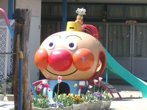 先日、温泉がてらに奈良の奥座敷・吉野を歩いてきたのですが、その途中、とある幼稚園の前を通りかかったところ、向こうにアンパンマンのすべり台があるのですが、これ、