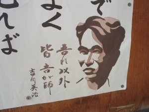 先日、生野の古くからある集落付近を歩いていますと、とあるお寺にこんな掲示が。 「学ぶ心でよくよく見れば まわりの物はみな先生」 「吾れ以外 皆 吾が師 吉川英治」 私もこれを見て、この書かれていることを肝に命じてさらに精進せねばならないな、と思い改めたのですが、筆使いがとっても見事で綺麗な楷書体であります。そして、 吉川英治先生 上手すぎ! 筆だけでここまで見事に吉川英治先生を描かれるとは、ある意味すごいです。お坊さんだけではもったいない腕前です。 いやぁ、素晴らしいです。 |