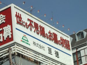 どうやら墓石を扱っている会社の看板なのであるが、これはかなりインパクトある。