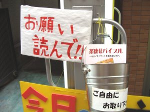 今回も先日、空堀商店街で見かけたモノであるが、店先に置かれてあるチラシに添えられている貼り紙にに私の目は覆わず釘付けに、というのも、