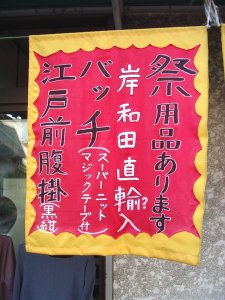 先日、地車(だんぢり)で大盛り上がり中の和泉市某所へ行って来ましたところ、とある雑貨店の店先に掲げられていた宣伝文句にピタッ、と歩がとまりまして。 それは、 岸和田直輸?入 えっ、岸和田って隣町やん? なのに「直輸入」しているとは、驚いた。 でも、地車は岸和田だけのものにあらず、泉州や摂津の沿岸部で古くから行われている祭事で、これに熱中する氏子達の熱さから彼らを「地車ファイター」と敬意を込めて呼ばれているくらいであるほどだ。 しかし、全国的に有名なのは「岸和田」で、その知名度の高さからあらゆる方面で研究され、最近では『エアー入り地下たび』というナ●キ社もびっくり!のあらゆる最新地車グッズも開発されるほどである。 たしかに隣町ですら異国だと感じるほど「おらが町」意識の強い地車ファイター達といえども、これら最新グッズはのどから手が出るほど欲しいもの、なので「異国」から手に入れてきたぞ! と強調したかったのであろう。 バブルの地上げと共に、みんなが離散して地域コミュなどほとんど形骸化してしまった我が町と比べると、こんなに皆が熱く一丸となれるなんて、本当に羨ましい。 何か日本の残すべきものは。。。と少し考えてしまった。 | |