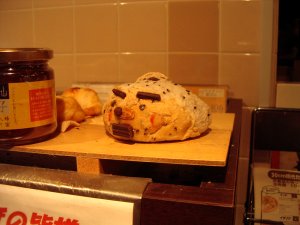 先日、大阪は難波のとあるパン屋に入ったところ、なにやら妙な視線を感じるので振り返れば、レジ横の棚にぽつんとパンが置かれてあったのだが、 いい目をしている・・・。 彼はパンとして焼かれてから随分と経っているのだろうか、飾りのチョコの一つが取れてしまってまるで本官さん(by天才バカボン)の鼻のようでもあるが、なかなかに風格を漂わせている。 こいつ、タダ者ではない・・・。 何かしら妙な出会いを感じた私は、店員さんにこれいくら?と尋ねたところ「売り物じゃないんで・・・。」とあっさりと断られてしまった。 孤高の麺包君。。。今日も店に訪れる客をじっと見守り続けていることだろう。 また彼に会いに行こうと思っている。 | |